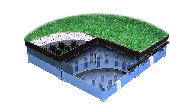 自動かん水コントローラの標準採用と底面から酸素が供給されるコンテナ構造により、芝が活性化され長寿命が期待できます。