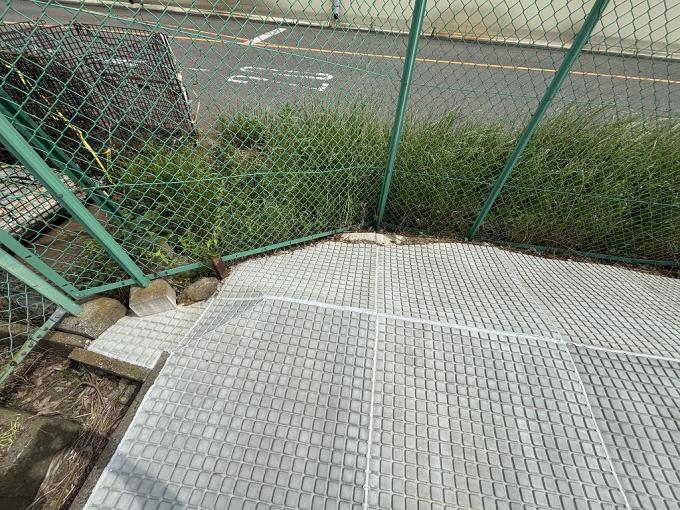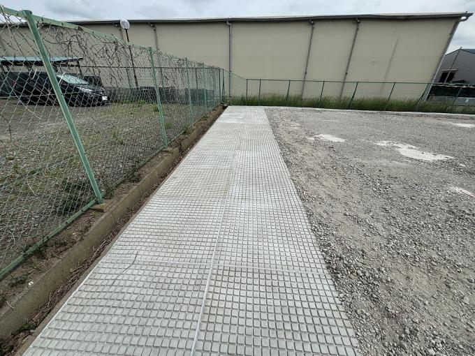 機材置き場等の普段、人がいないところの除草作業の軽減にマルチマットを施工