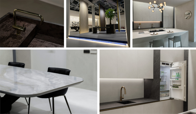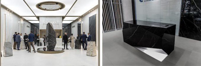 LAMINAMは、デザインの潮流に私たちのブランド哲学と独自技術を加えた「新しい価値を発信する作品」としての大判セラミックタイルを、ミラノサローネ、チェルサイエといった国際見本市で毎年発表しています。名古屋ショールームで確保された最大のLAMINAM展示・イベントスペースは、新しいコレクションとその世界観を再現しトレンドとともに発信する場として、またお客様との日常的なコミュニケーションの場として設計されました。