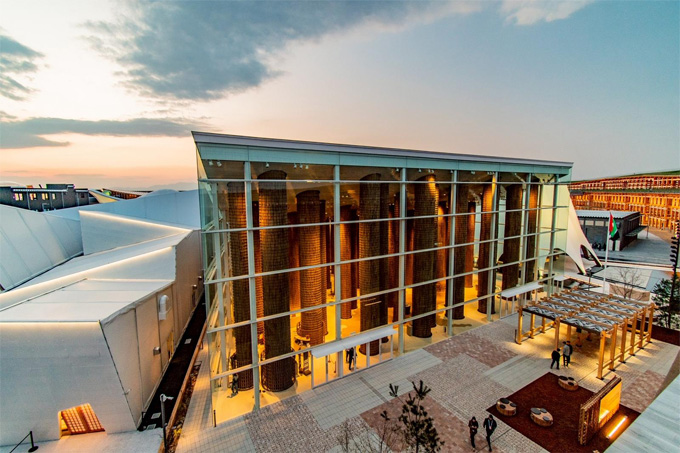 アラブ首長国連邦(UAE)パビリオンに大判タイル・ラミナムが採用されています。