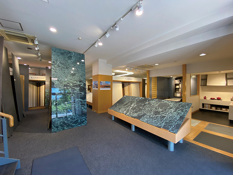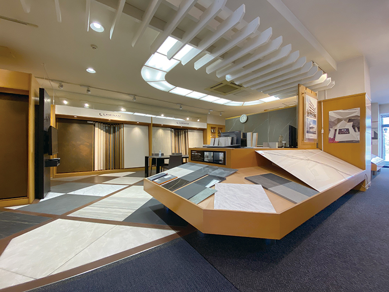 ショールーム内には一部原寸大ラミナムが展示しております。ラミナムのスケール感が一目で感じることができます。
