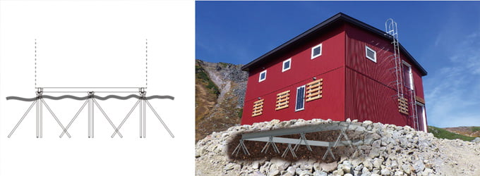 建材ナビ・スタッフからのコメント スパイクフレーム工法は、人力で運搬施工でき、斜面地でもしっかりとした建物やテラスを作ることができるなど、さまざまな地盤での対応が可能です。そのため、山の中の別荘や山小屋、トレーラーハウス、コンテナといった多様な構造物に対応できるだけでなく、台風などの災害にも強いのが特徴です!これからのライフスタイルに、ぜひスパイクフレーム工法を検討してみてはいかがでしょうか。
