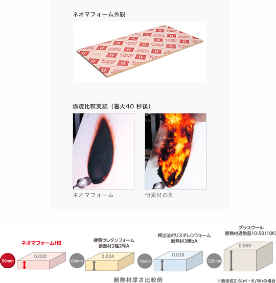 フェノール樹脂のため、高い断熱性能とすぐれた耐熱性を発揮します。