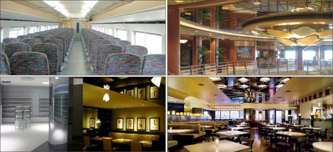アルポリック®は店舗やオフィスビルの内外装、船舶や鉄道など、幅広い用途で採用されています。
