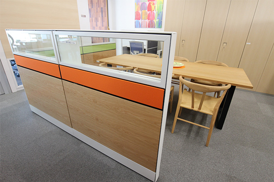 金属製パーティションとは一線を課す木を表面材とした新しいカテゴリーのパーティション。発想を転換し、違った角度からも物事を判断する意味を込め「VENT(風)」と命名しました。