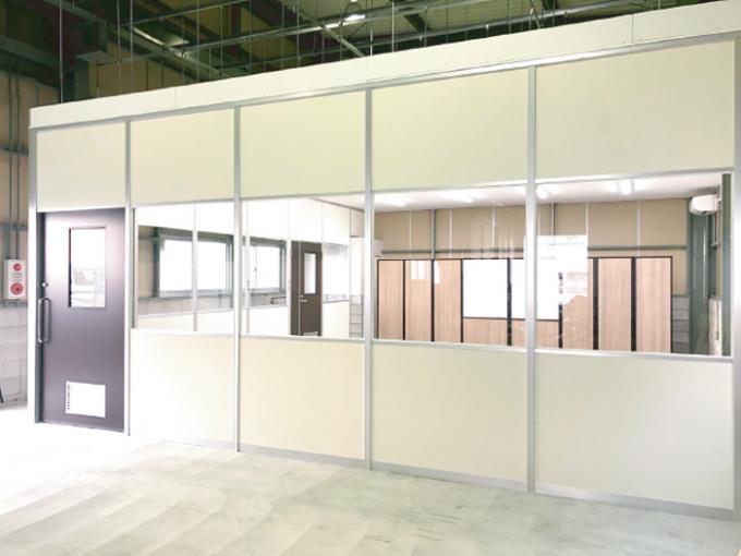 工場内事務所、オンラインコンピューター室、会議室、応接室、休憩室などの各種用途に合わせて「アルミタイプ」「スチールタイプ」の2つのタイプで対応、サイズもバリエーションも自由に設計可能。