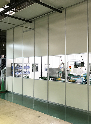 工場内に独立した環境を創りだす、天井付パーティションシステム。