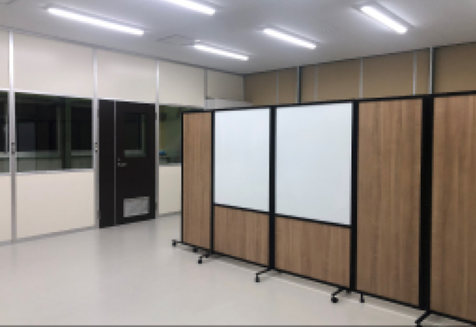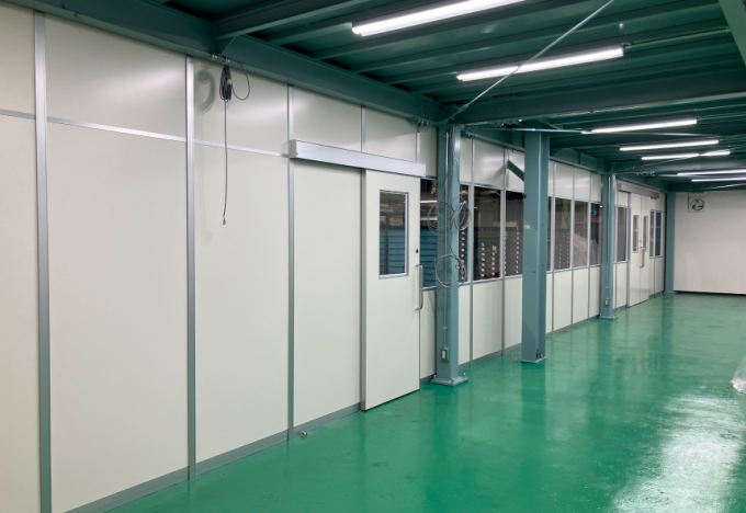 既設の鉄骨中2階の1階部分をパーティションで間仕切ることで検査ブースに大変身。