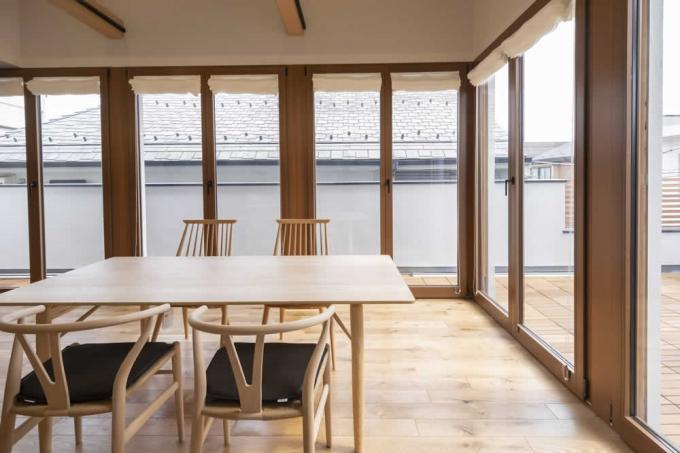 アルミ&杉フレームのオリジナル・ガラス引き戸です。美しく、機能的な空間づくり=快適な暮らし。