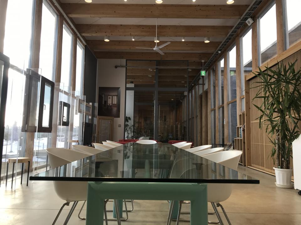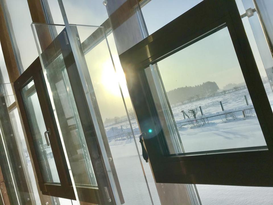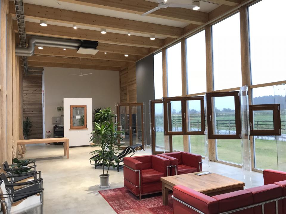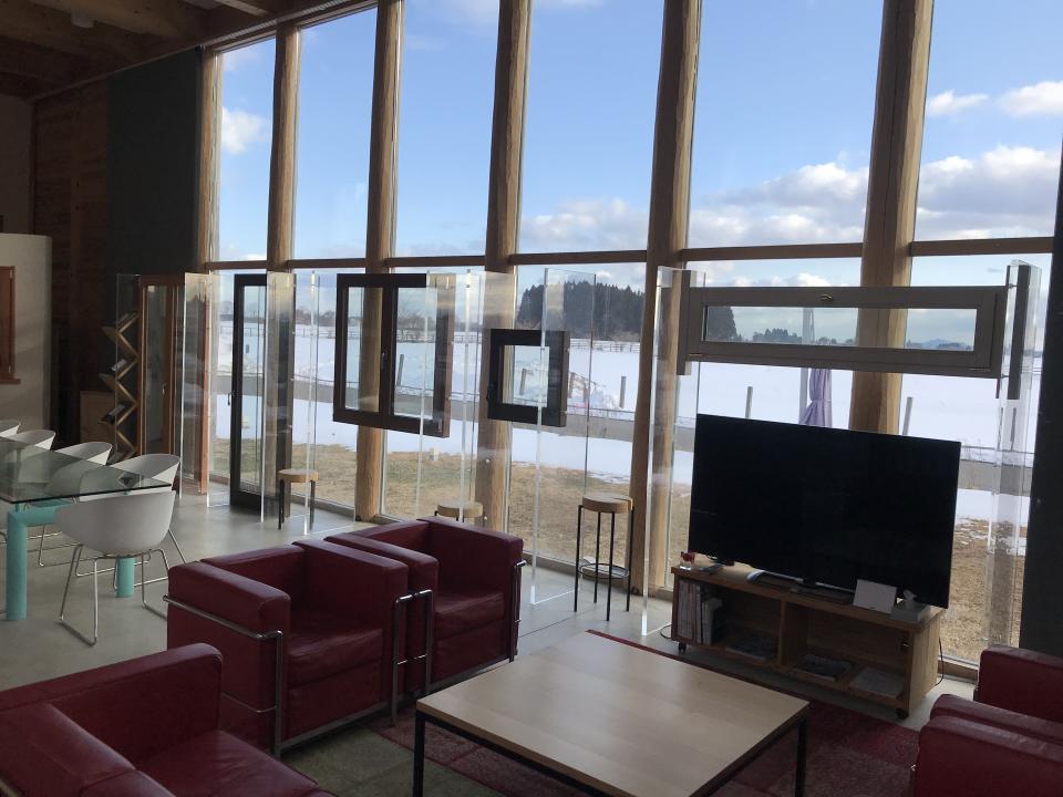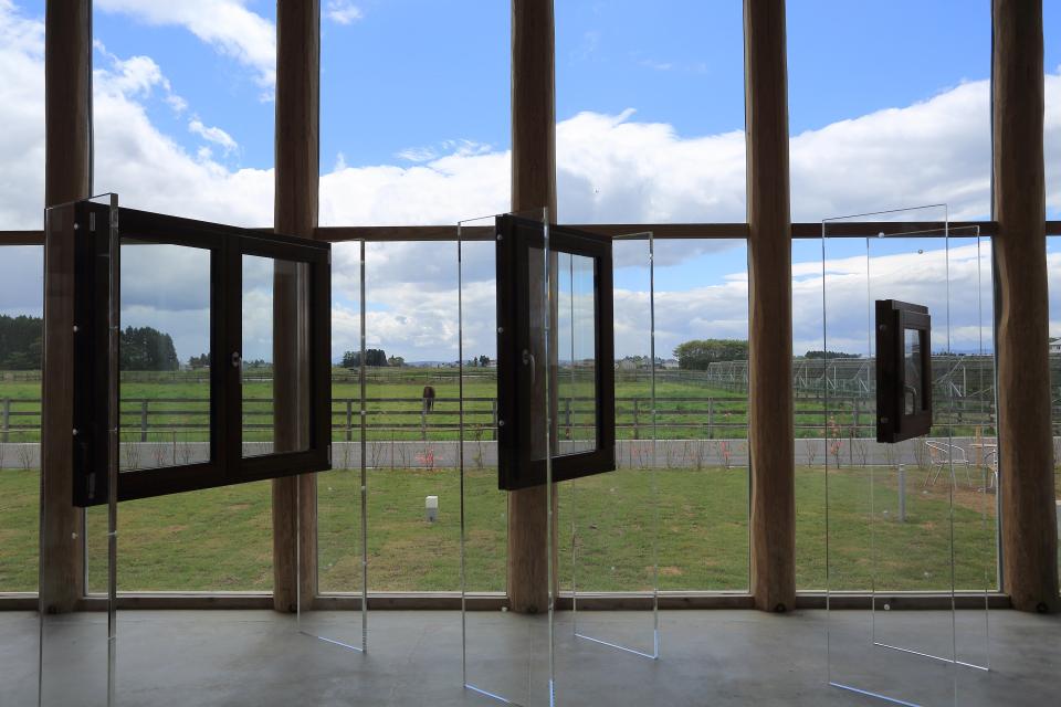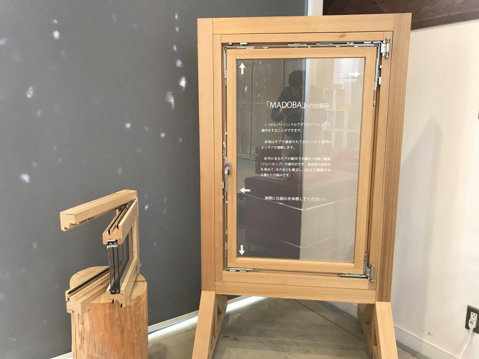 工場に併設されているショールーム&ギャラリーには、透明アクリルに固定された木製窓「MADOBA」が宙に浮いているようにディスプレイされ、実際の窓に触れて体感する事ができます。