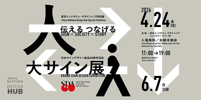「大サイン展」は日本サインデザイン協会(SDA)がこの世に生まれて60年。サインデザインを取り巻く社会環境は大きく変化し、その領域や社会的役割も案内板や誘導サイン、看板や標識といった従来の枠を超えて広がってきました。いまやサインデザインは、都市や建築、公共空間、商業環境、文化活動など、さまざまな場面において、人と人、人と場所、人と社会をつなぐ存在となっています。