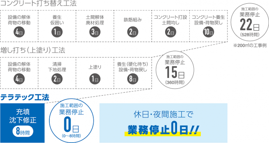 【工場・倉庫・店舗】床の傾き・沈下を業務停止時間「ゼロ」で修正
