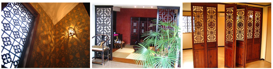 透かし建具とは、昔から主に中国や韓国で、建築物の窓の装飾として使用されていた木製建具をいいます。マンダリンでは、100年以上昔の建築物に使用されていたアンティーク建具と、アンティークパターンを元に、MDFでお作りするカスタムオーダー建具の両方を扱っております。