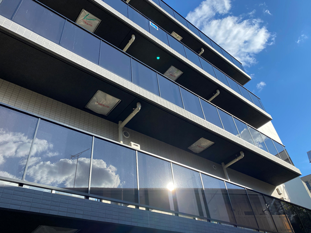 ■柱を表に出さないスタイリッシュなデザインを高耐候のシーリングを用い、ガラスを支柱に強固に固定することで実現しました。