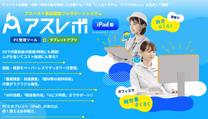 ■アスベストの調査・分析・除去工事を熟知した企業グループが「こんなシステム、アプリがほしい」を追求して開発!