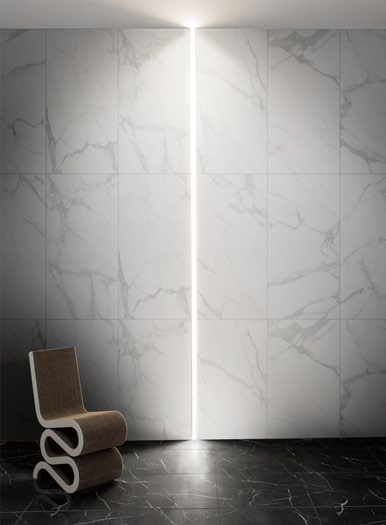 ■天然の大理石の質感や色調を磁器質タイルで忠実に再現し、あらゆる場所で、インテリア性や耐久性にも優れた、高級感溢れる空間を演出します。