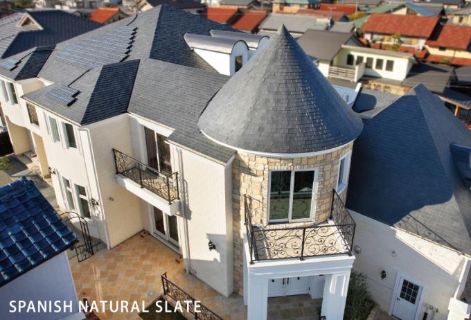 スペインより直輸入の最高級天然スレート。美しい表情と高い施工性を兼ね備えた最高級のスレート瓦です。吸水率も低くフック工法による施工も可能です。落下の防止対策も万全。また在来工法での施工も可能です。