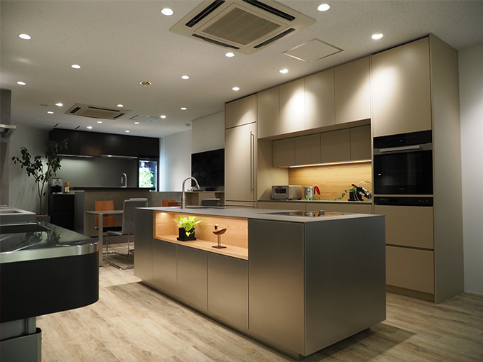 実際に使える、体験型オーダーキッチンスタジオ。ミーレ、ガゲナウ、リープヘルなど、国内外のビルトイン機器も展示しております。