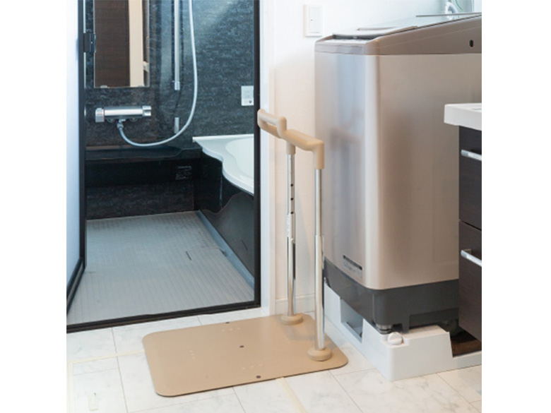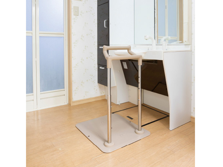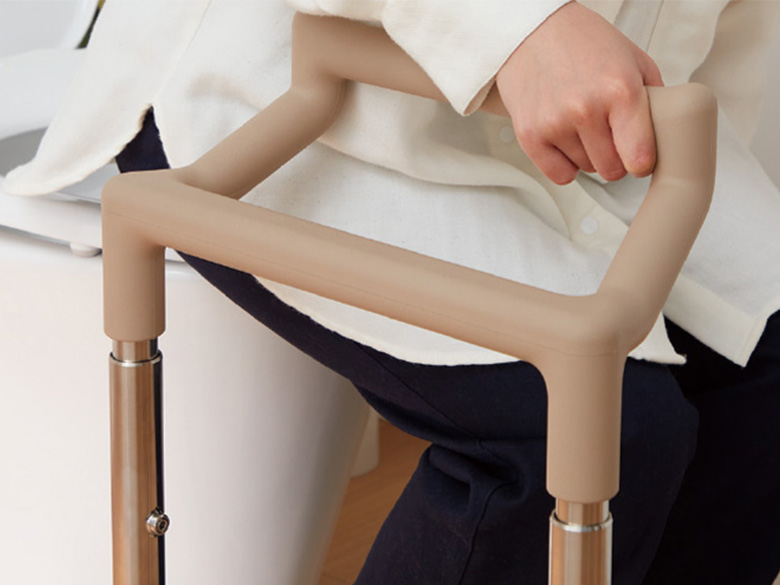 「ロ」の形をした手すり部分は、正面から手すりを握った際に手首の角度が自然になるため、どこからでも握りやすく腕に力が入りやすい形状です。