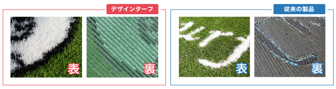 今まで人工芝にデザインを入れる場合、色のついた人工芝を切り貼りするか、染色する方法しかありませんでした。