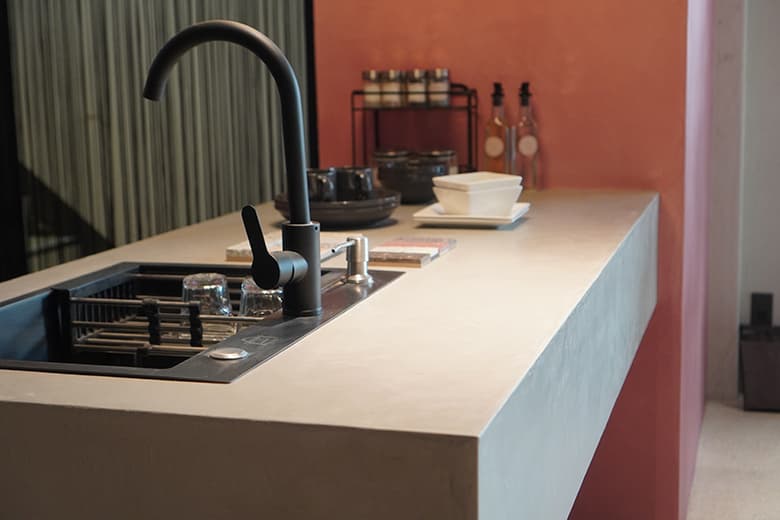 MORTEXは、水を通さない薄く強靭な仕上げ層をつくる左官塗材で、優れた機能性と高い意匠性を合わせ持っています。屋内外の使用を問わず、表面を美しく化粧されたコンクリートや「タデラクト」のような鉱物性の表情を、お作りになる浴室、床、キッチン、家具、什器に与えます。無限の調色が可能で、あらゆる形へ塗付けられます。