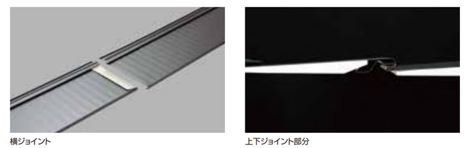 エテルナ本体の横ジョイントは、オス:メスのハゼ嵌合方式を採用。ジョイントの重ね合わせが簡単です。雨水などの侵入もシャットアウトし、雨仕舞にも大変優れています。