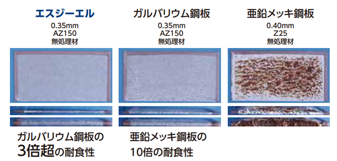 国内の金属屋根材メーカーでは唯一、日鉄鋼板特許のSGLⓇを当社製造の全製品で採用しました。(国土交通省の不燃材料認定あり)