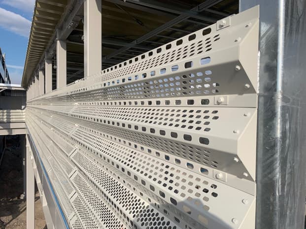 光や風を優しく透過させるパンチングメタルを折り曲げることで強度を備えた有孔折板は、設計の可能性を広げる素材として、高い注目を集めています。メタルテックの有孔折板「マックスウインドウ」は、自社工場で一括生産しているため、厳格な品質管理の下、高い品質を実現しています。