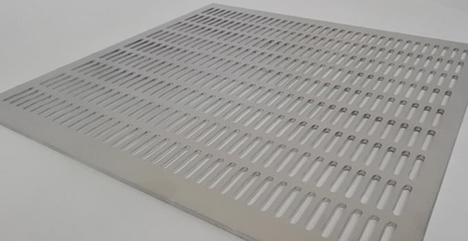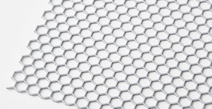 パンチングメタル(打抜金網・パンチング加工)とは、鉄・ステンレス・アルミニウム等の金属板に丸・角・長丸等の孔(あな)を開けたものです。金属の強度を活かしつつ、孔を開けることで軽量化・透過性・通気性・デザイン性等の機能性を持ちます。