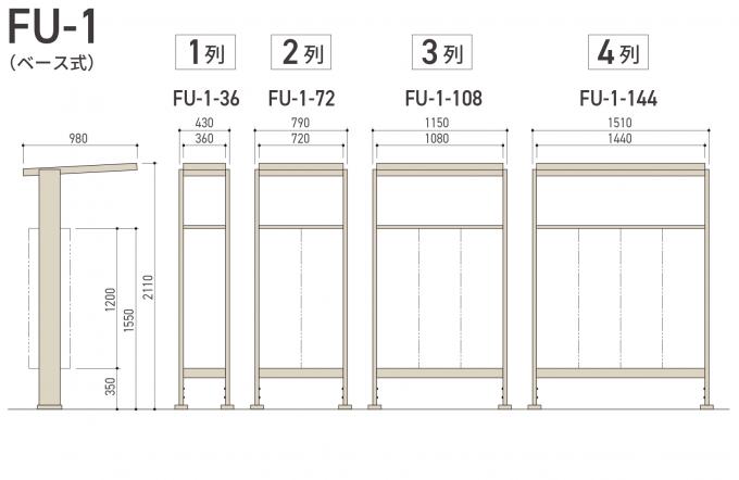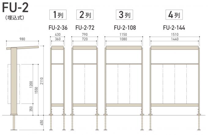 雨天時の受け取りに配慮した屋根付きで設置方法がベース式の「FU-1」と埋込式の「FU-2」を取り揃えています。