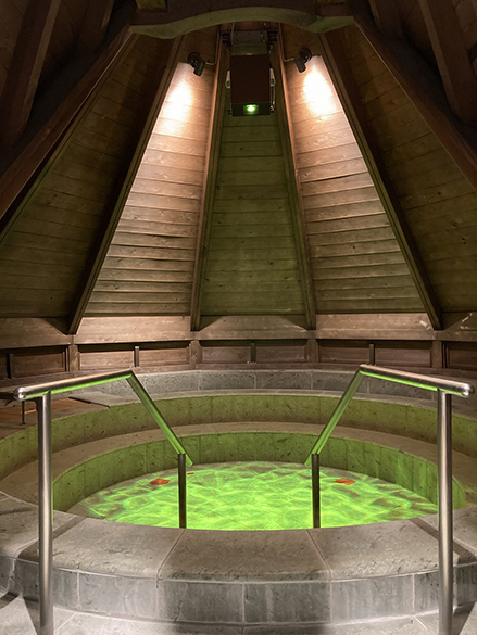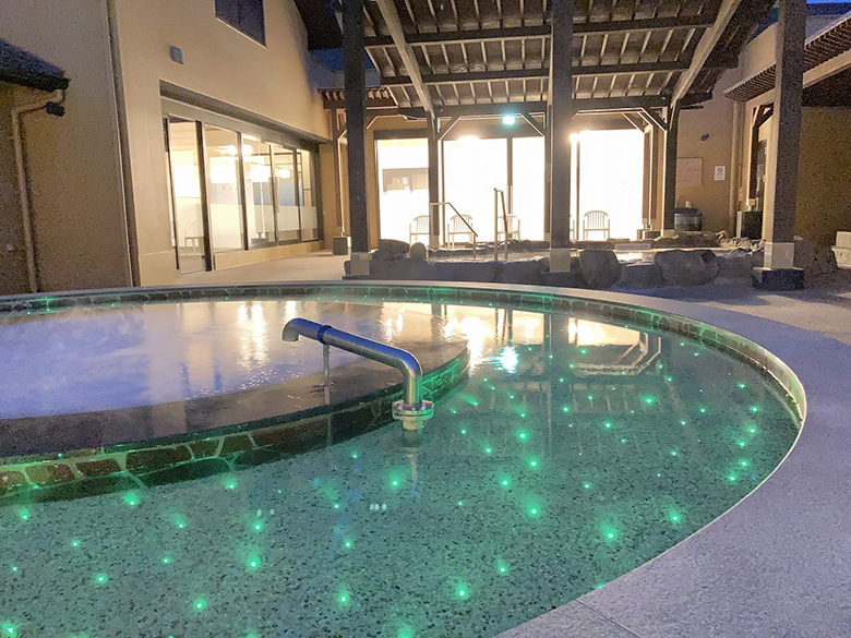 ホタルの湯です。湯床が幻想的に点滅しながら色変化します。