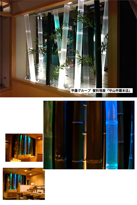 ・照明の色を変えれば、様々なカラーの「透ける竹」をお楽しみ頂けます。