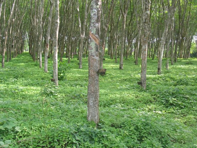 ラバーウッドは、タイ南部の植林木です。25年から30年間ゴムの原料(ラテックス)を採取した後、伐採してフローリングに加工しています。