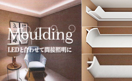 LEDと組み合わせればモールディングの背後からもれる光が優しい空間を演出します。