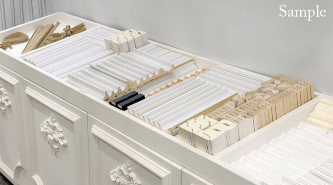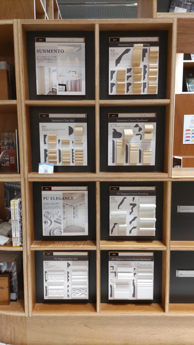 「サンメント」「PU製エレガンス」「サンメントセラ EXE」「サンメントセラCE」はお持ち帰り可能なサンプルもご用意していますので(※サンプルは数に限りがございます)、モールディングにご興味がある方はぜひこの機会にご覧ください。