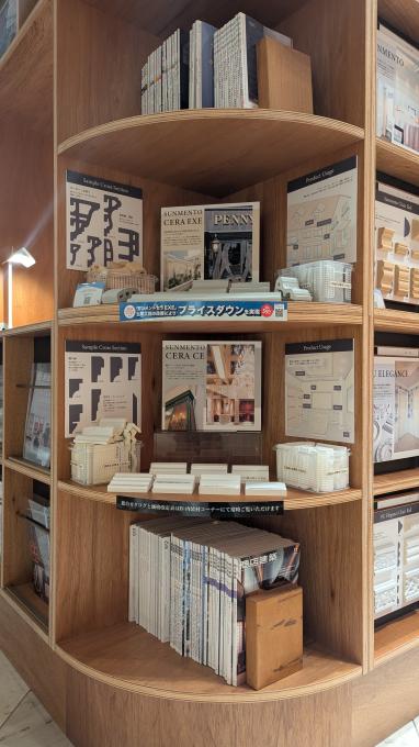 東京都・新宿「リビングデザインセンターOZONE」3FのOZONEカタログライブラリー内の特設コーナーにて、モールディングのサンプルや事例画像などをご覧いただける特別展示を開催しています。