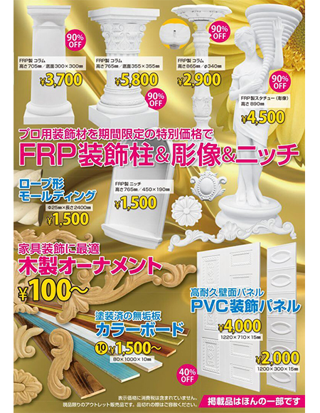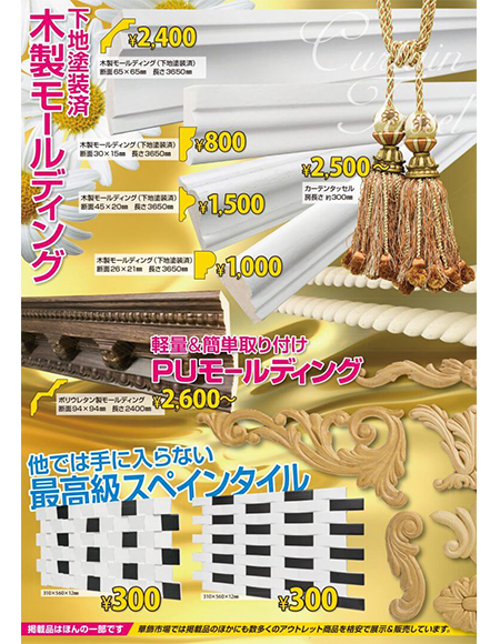 木製モールディングなどの各種アウトレット装飾材を最大90%OFFの大特価で販売!