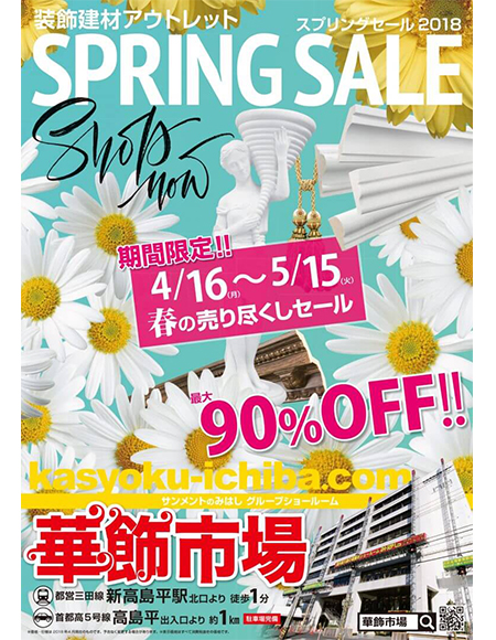 みはしグループショールーム「華飾市場」では、皆様の日頃のご愛顧に感謝して、2018年4月16日~5月15日の1ヶ月間、「スプリングセール2018」を開催いたします。