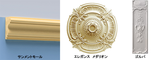 木製、PU、FRP、GRGなど様々な素材がインテリアの様々な表情を作り出します。モールディング、オーナメント、壁面パネルの多様性を3つのインテリアシーンの演出でご覧いただきます。みはし40年の伝統と進化を実感してください。