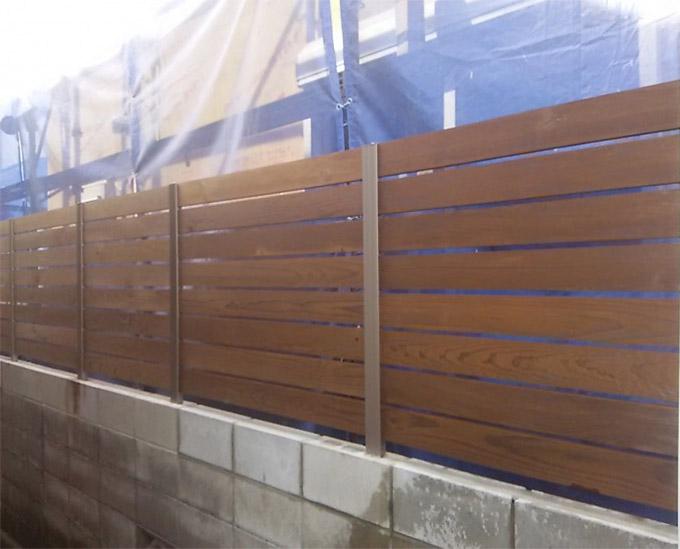 スーパーフェンス スーパーライト柱を使用し、ブロック塀にアイアンウッドのウッドフェンスの施工が可能になりました。