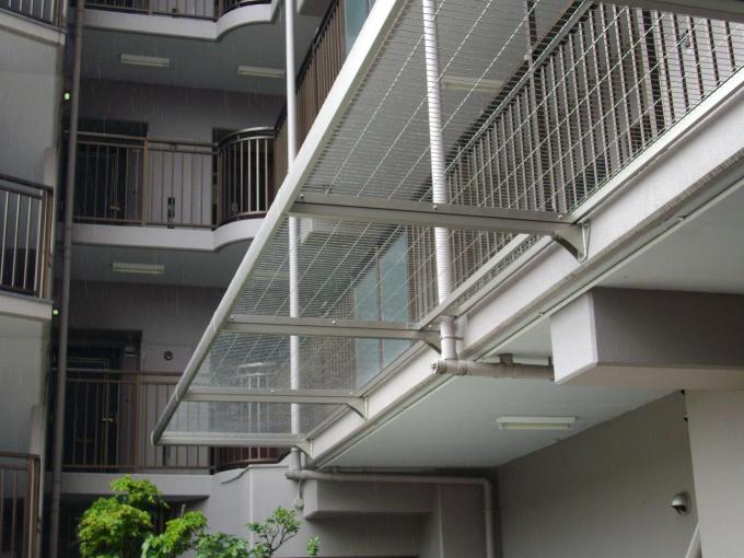 アルミ材とステンレス材の併用により軽量で施工が簡単。しかも錆(さび)に強く、落下物から人を守ります