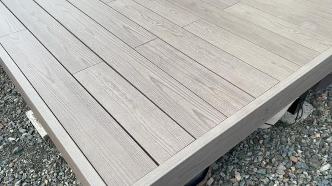 出展商品:人工木材彩木(あやぎ)を使用した新色グレージュの彩木ガーデンデッキ、彩木スナップデッキなど