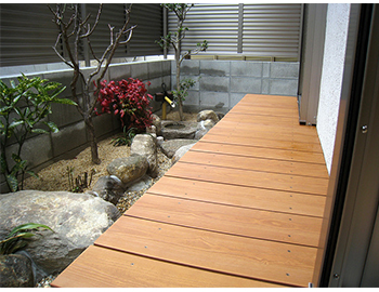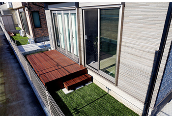 ■天然木のような風合いと、子供が裸足で遊べる安全なウッドデッキ空間を創ります。