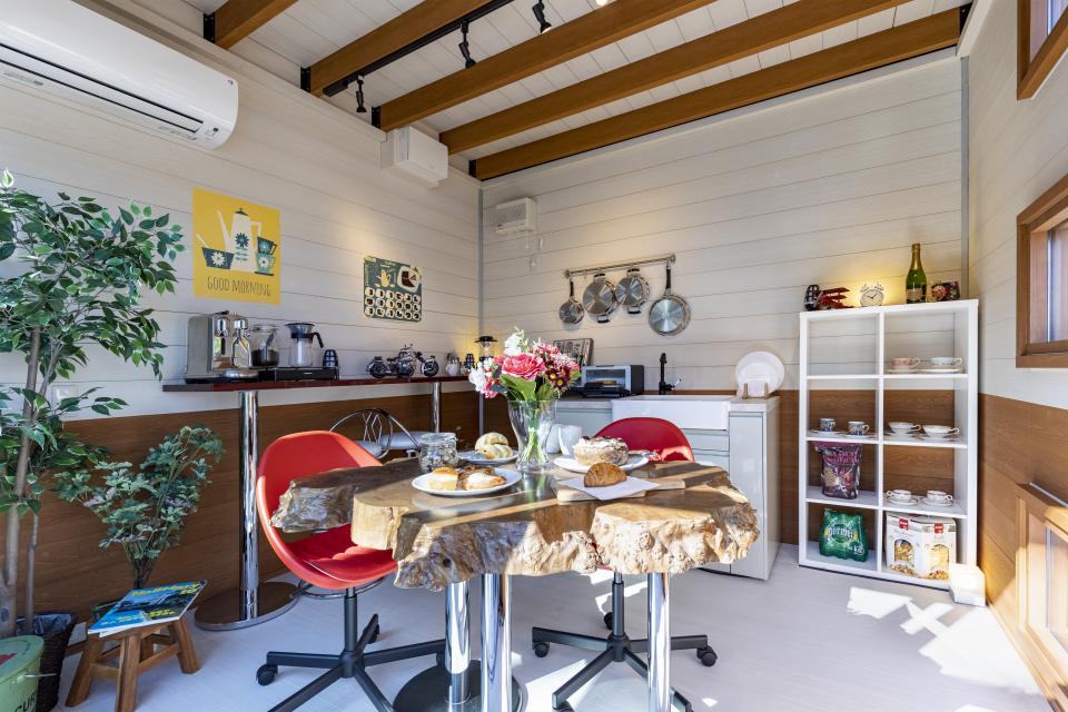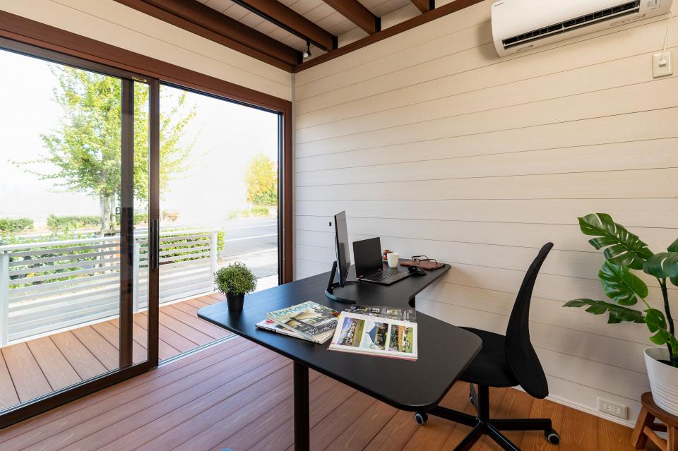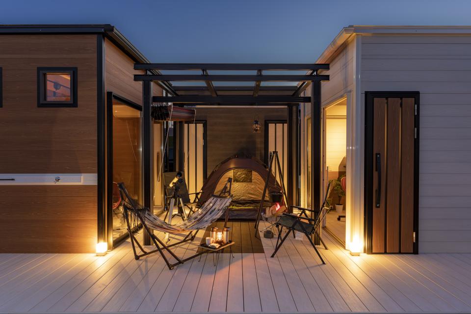 戸建ての庭や店舗利用など多様な場所での利用可能なデッキハウス。