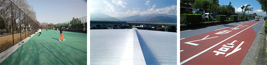 特に、屋根・外壁への建築用、屋外装置・キュービクルへの工業用、舗道への道路用と3種類の製品をご紹介いたします。
