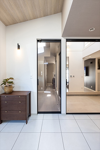 近年は天井の高い開放的な空間設計がトレンド。ご要望にお応えし、すべての開口バリエーションで天井高2600mmまで特注対応できるようになりました。