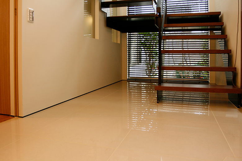 従来の巾木が高さ30~60mmもあるのに対し、《albase 》は高さわずか12mm。部屋全体を眺めたときに巾木の存在を忘れるような主張をしないデザインです。また、わずかな高さにも関わらず、掃除機などの衝撃からしっかりと壁を保護してくれます。