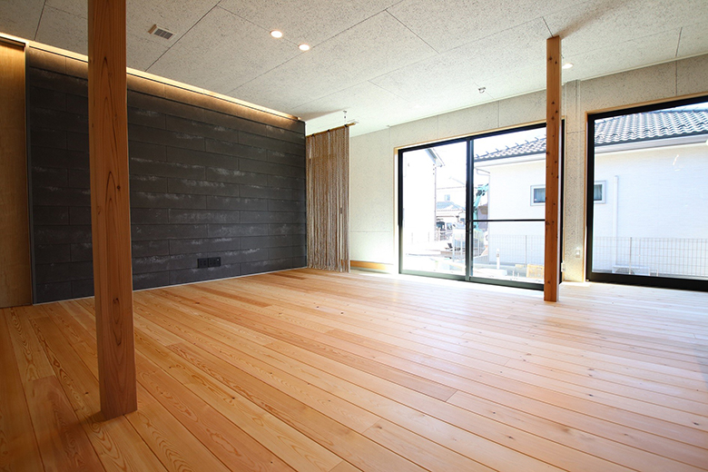 従来の巾木と異なり、プラスターボードを取り付ける前にalbaseを床材に固定し、その後albaseの上にプラスターボードをのせます。この工法により巾木が床から浮くことを防ぐことが可能です。