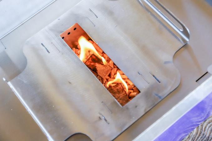 点火は着火剤で行います。700gのペレットで約1時間20分燃焼します。