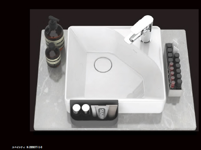 洗面ボウルと一体カウンターで、美しさと機能性、清潔感を高めます。